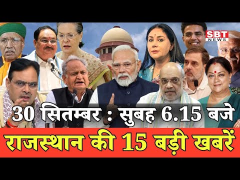 30 सितम्बर : राजस्थान सुबह 6.15 बजे की 15 बड़ी खबरें | SBT News | Rajasthan News